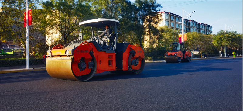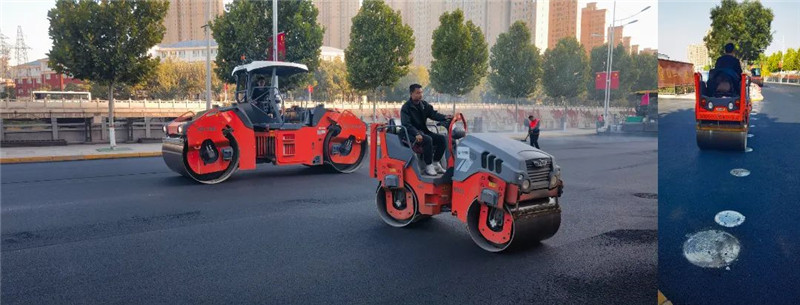悍馬小型壓路機(jī)則配合大型壓路機(jī)對道路邊緣和過渡面、井蓋邊緣等區(qū)域做壓實(shí)處理,確保壓實(shí)區(qū)域無死角,整個面層平整度和壓實(shí)度更好
